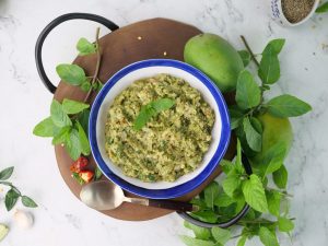 -Lehsan,hari mirchien,namak aur kala namak dal ker ache tarhan crush ker lein.