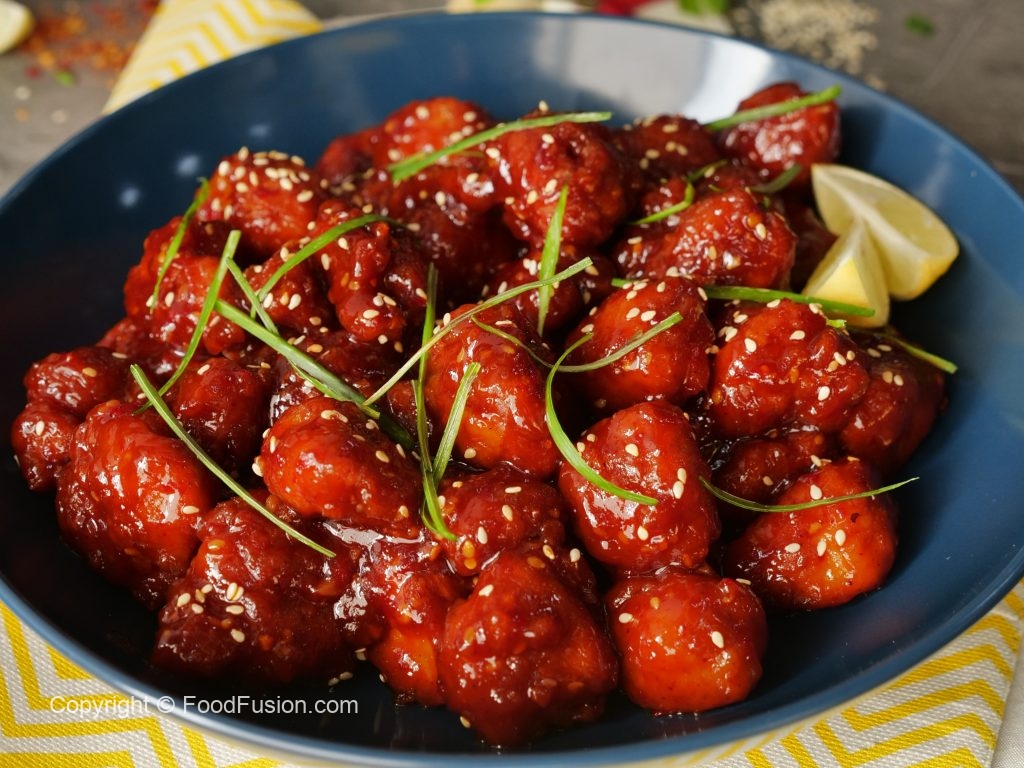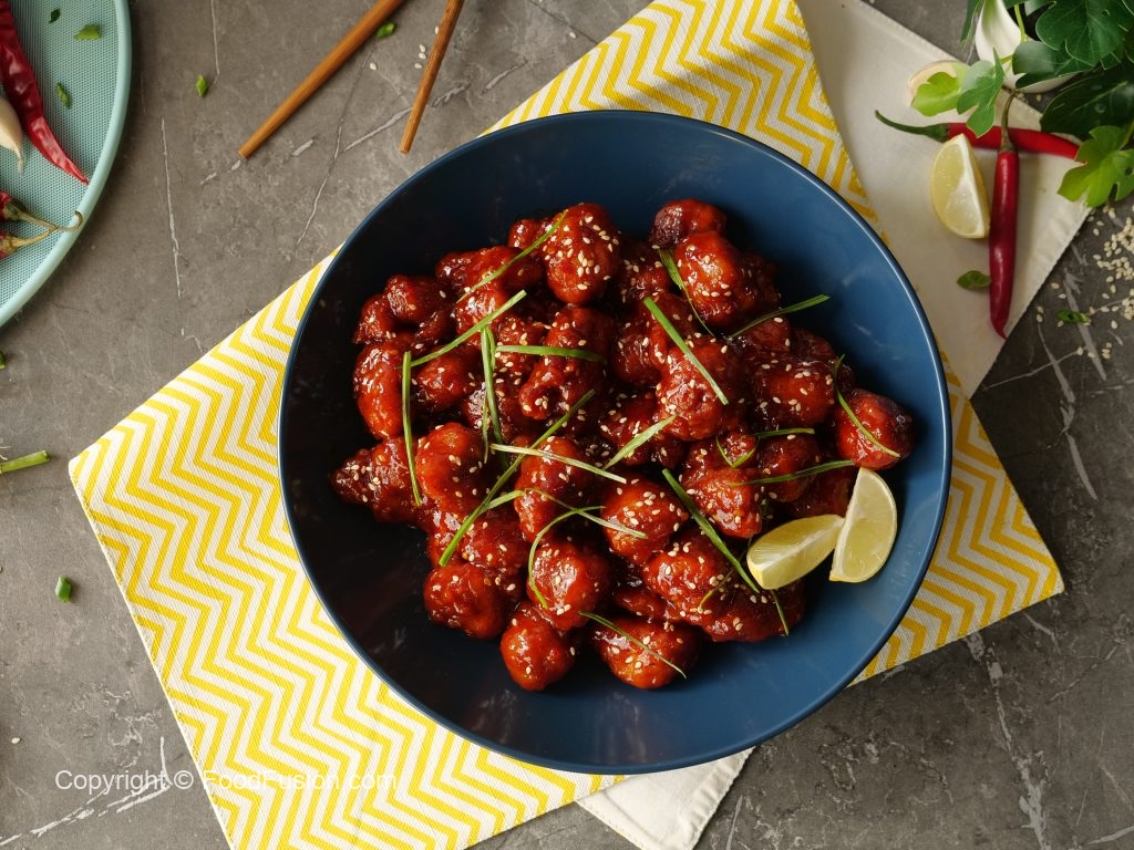 -In a wok,heat cooking oil and deep fry chicken crispy shots on medium flame until golden brown (2-3 minutes) & set aside.