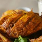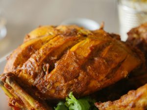 Pot mein pani garam karein,steam rack rakh ker marinated whole chicken rakh dein aur dhak ker 35-40 minutes kliya steam cook ker lein aur remaining marinade bhi laga lein.
