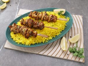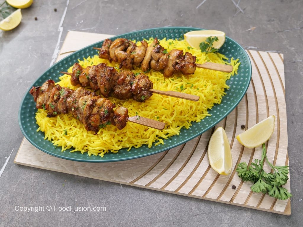 -Apply prepared butter glaze from all sides on chicken skewers & serve!