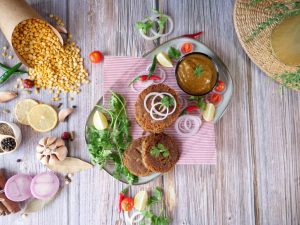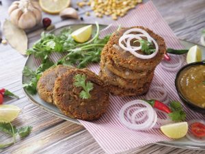 Wet hand with water,take a mixture (60g) & make kababs of equal sizes (makes 14-16).