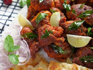 Crispy outside, juicy inside – this Malabar Chicken Fry is flavor at its finest, bursting with the aroma of curry leaves. Serve with lemon & onion rings for that perfect kick – guaranteed to impress!