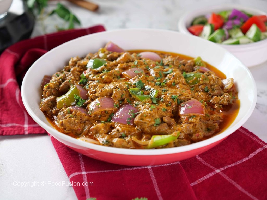 -Karahi mein cooking oil,pyaz aur Shimla mirch dal ker ek minute kliya sauté karein & side par rakh dein.