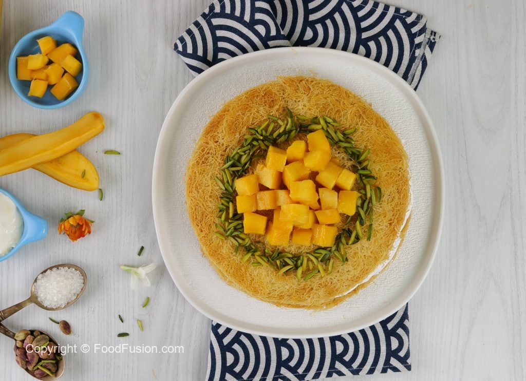 Treat yourself to a blissful dessert with Mango Kunafa: a crispy, golden pastry layered with juicy mango and topped with a sweet, aromatic syrup. A slice of perfection awaits! #happycookingtoyou #FoodFusion #digitalammi #pakistanicooking #NurpurButter #nurpurbutter