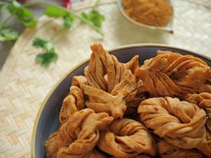 -In a wok, add cooking oil, heat it (150 °C), add prepared raw masala crackers & fry on medium flame until golden & crispy.