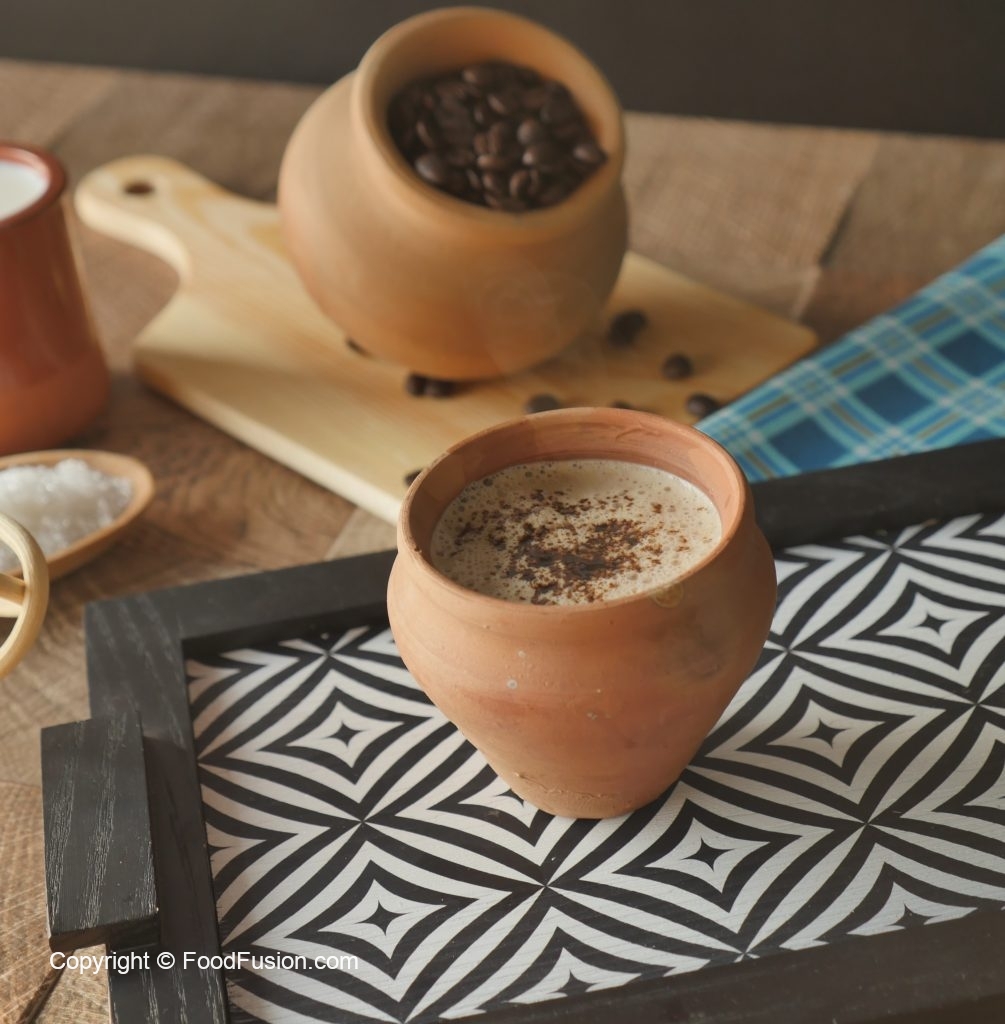 Heat the clay pot on flame. Place the clay pot in a pot & add tandoori coffee in it.