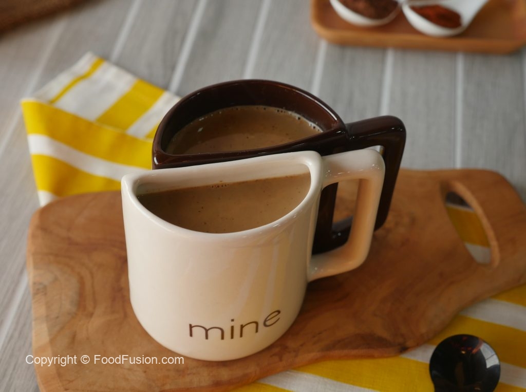 Add cocoa powder,turmeric powder,nutmeg powder,black pepper powder,cayenne powder,cinnamon powder,brown sugar,whisk well & cook on low flame for 2-3 minutes.