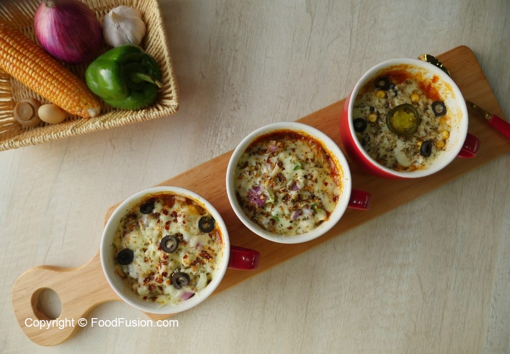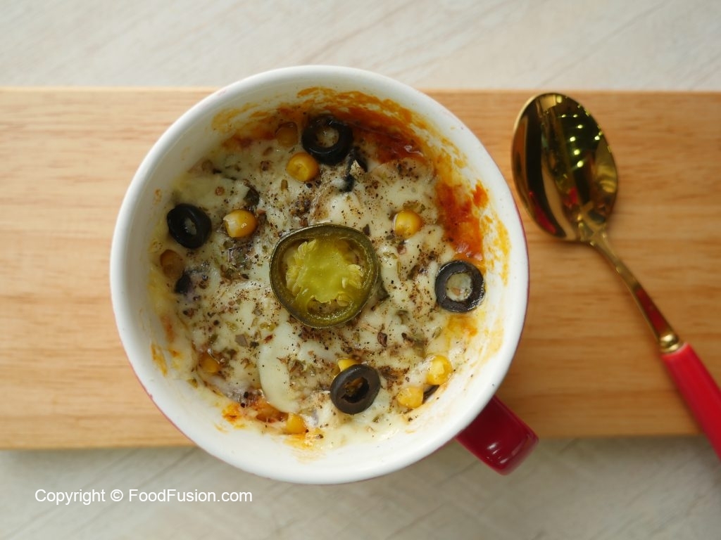 Make Microwave Mug pizza 3 ways. Both kids and adults will love it and the best part is that you can make it in 5 min. #HappyCookingToYou #FoodFusion