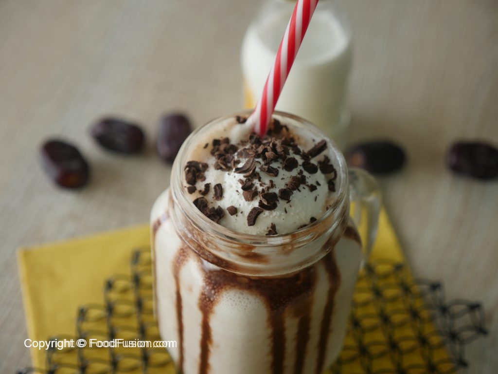 Serving jar mein chocolate syrup,tayyar smoothie,ice cream dal dein aur chocolate sa garnish ker ka chilled serve karein.