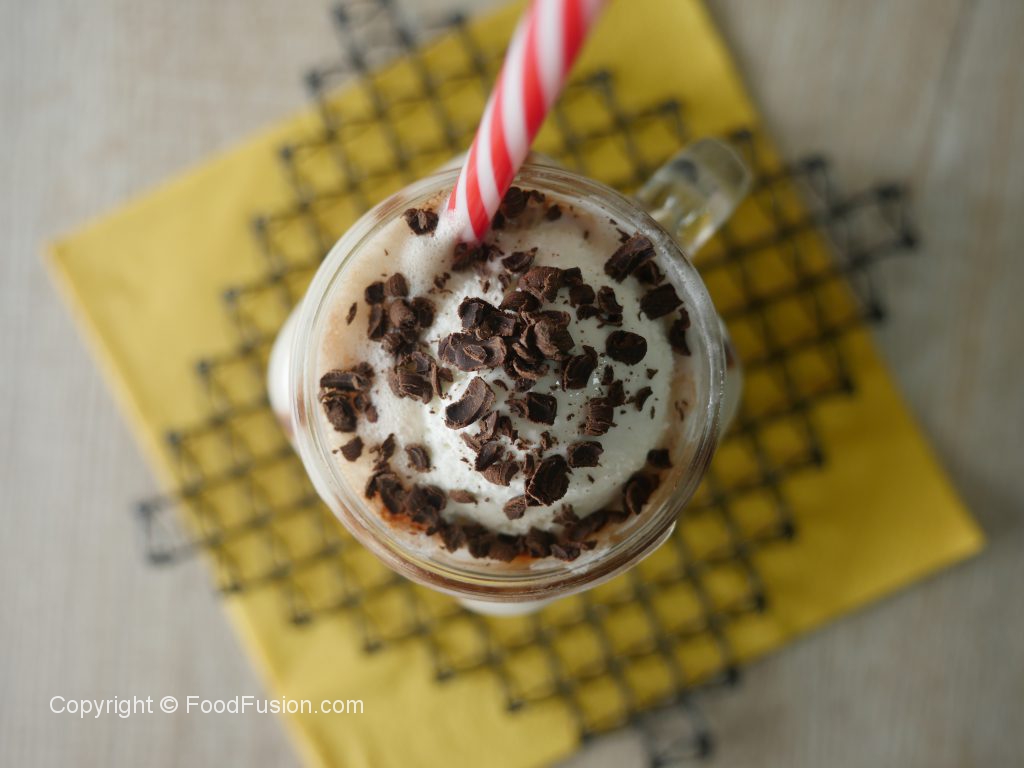 In serving jar,add chocolate syrup,prepared smoothie,ice cream and garnish with chocolate & serve chilled!
