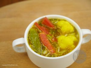 In boiling water,blanch carrots for 3 minutes and blanch cauliflower for 1-2 minute, strain and dry all vegetables.