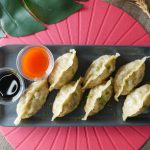 On cutter,place small dough,cooked chicken filling then close the cutter to seal the edges (makes 35).