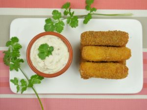 Try these appetizing “Mozzarella Sticks recipe” with delicious “Sour Cream Dip recipe”. #HappyCookingToYou