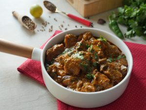 Cover & cook on low flame for 45-50 minutes or until meat is tender.