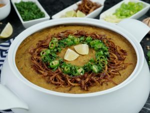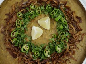 Garnish with fried onion,fresh coriander,green chillies,lemon,chaat masala & serve!