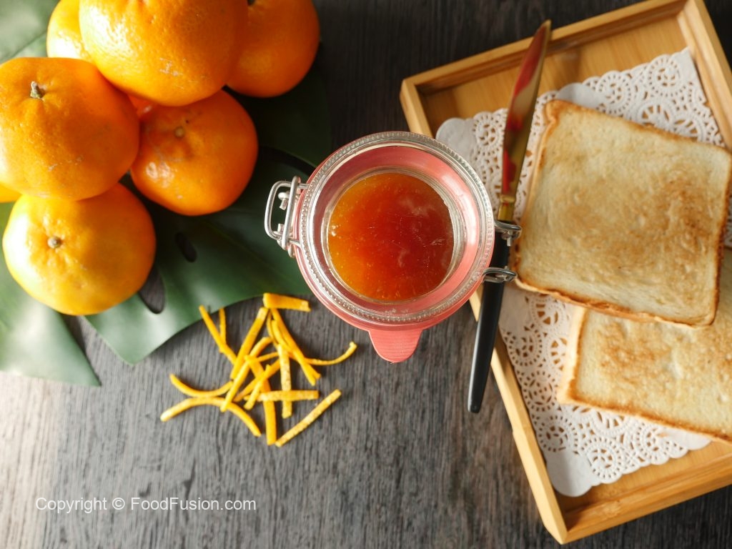 If there is any scum on the surface,spoon it off and transfer the marmalade to sterilized jars.