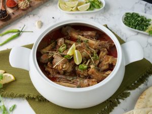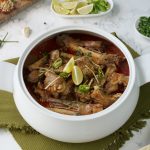 -In a serving dish,add paya nihari,tarri & garnish with fresh coriander,ginger,green chillies,lemon & serve!