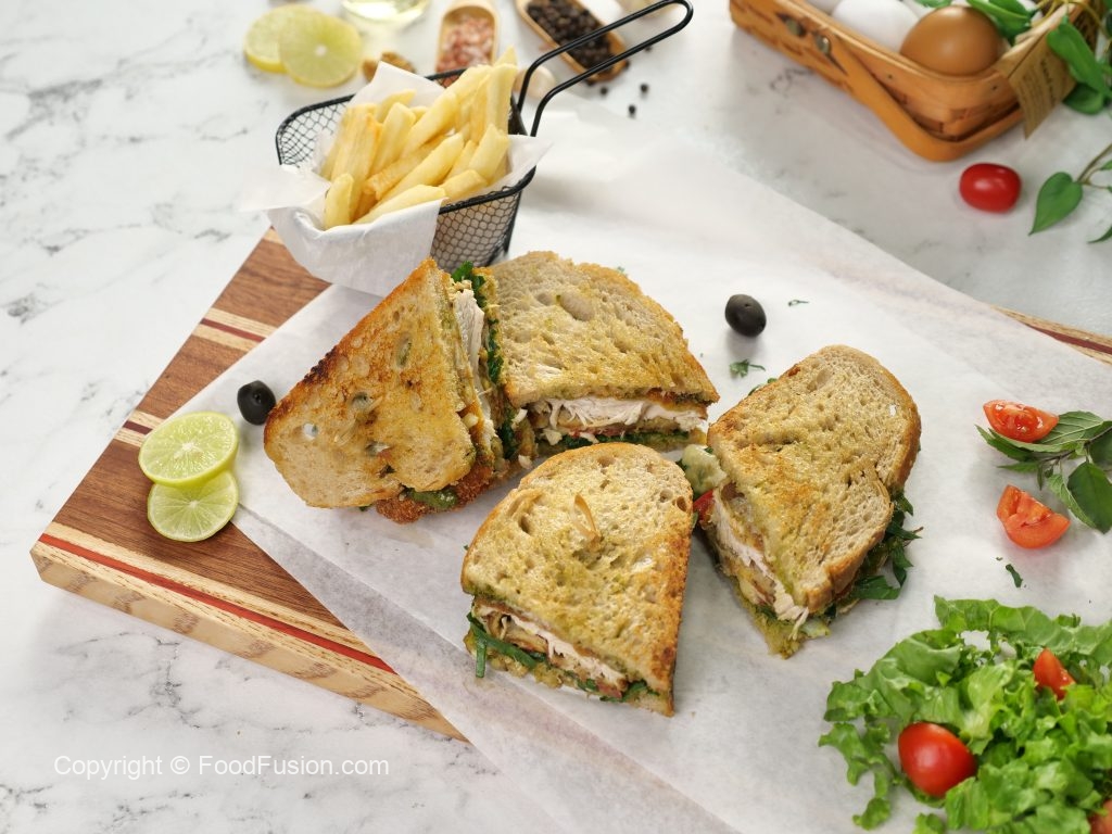 -Serve with potato fries,Pesto sauce & salad.