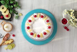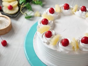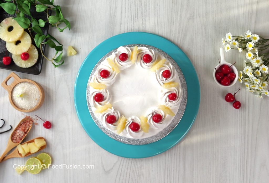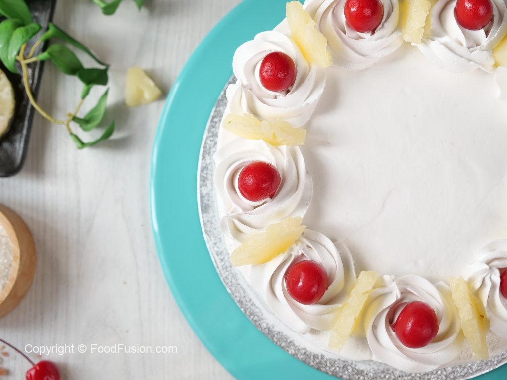 -Pineapple chunks aur frosting ki thin layer laga lein.