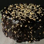 Remaining warm ganache ko cake ka upper dal dein aur peanuts dal dein.