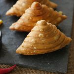 On one side of dough,apply water,join two sides/edges to make a cone and press gently to seal the cone.