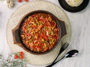 -Sizzler pan ko garam karein aur qeema manchurian dal ker fried rice ka saath serve karein!