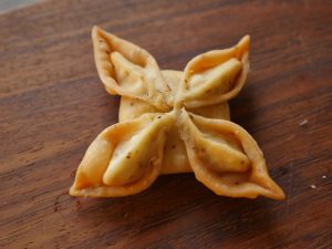 Dough ko plat lein aur corners ko bahir nikal ker flower ki shape bana lein.