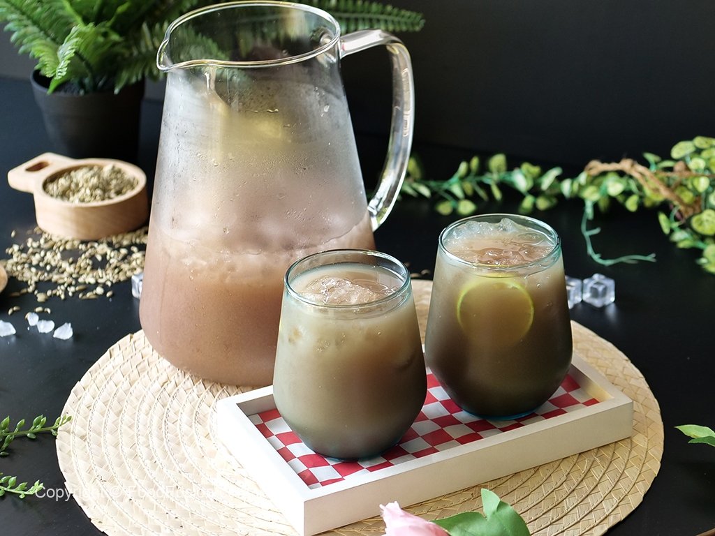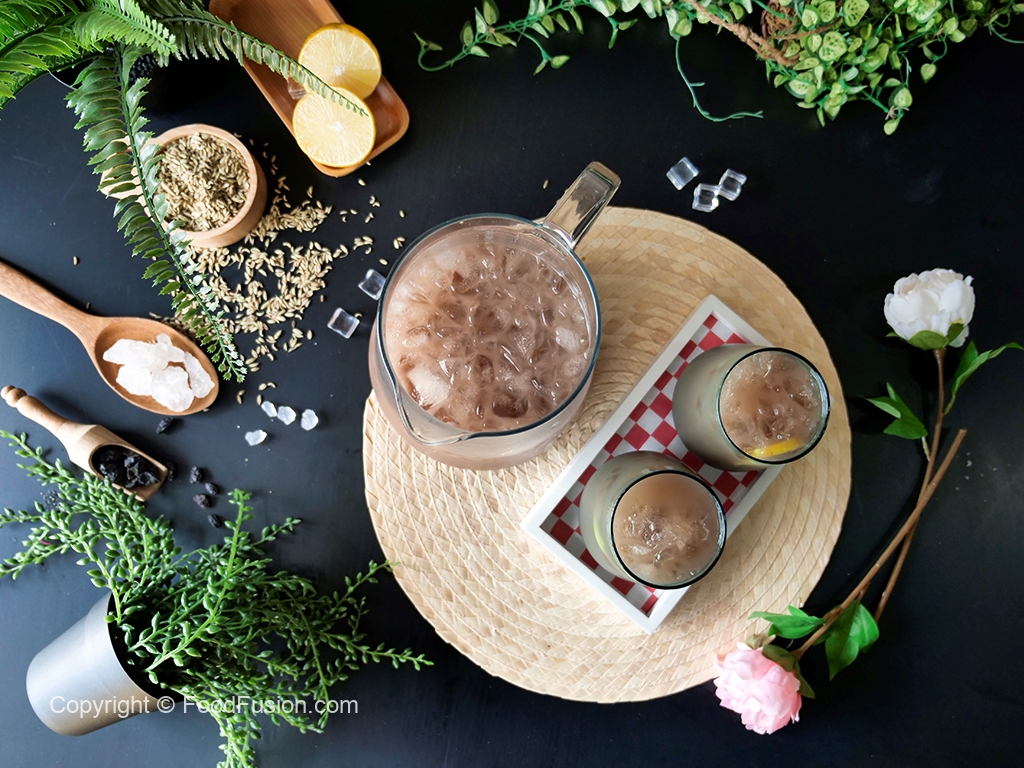 In a jug,add crushed ice,saunf sharbat,lemon juice,stir & serve!