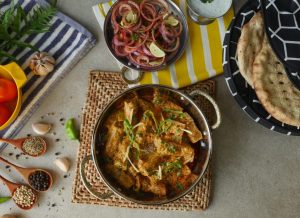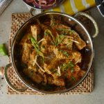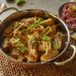 Garnish with butter,ginger,green chilli,fresh coriander & serve with naan.