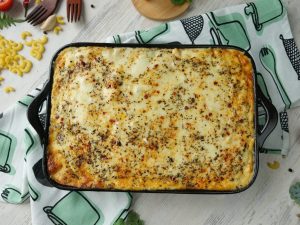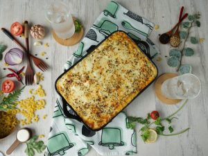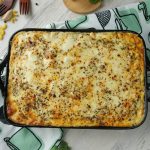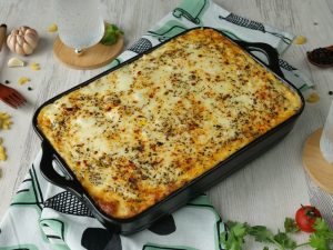 -Add another layer of potato & cheese mixture & spread evenly.