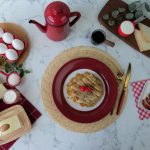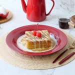 -On french toast,drizzle vanilla cream sauce,pancake syrup,garnish with cherries & serve!
