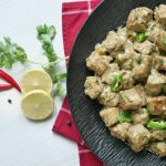 -Large tawa per cooking oil dal dein aur steamed cooked kababs (10 kababs) ko darmiyani ancch per tamam sides sa golden ho janay tak fry ker lein phir kabab ko 1-inch pieces mein cut ker lein aur ek minute kliya paka lein.