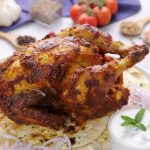 -Do not forget to place the food tray under the chicken & grill at 160°C until chicken is done (60-90 minutes) (Temperature & timings can vary according to your appliance).