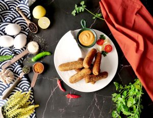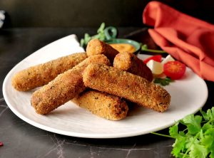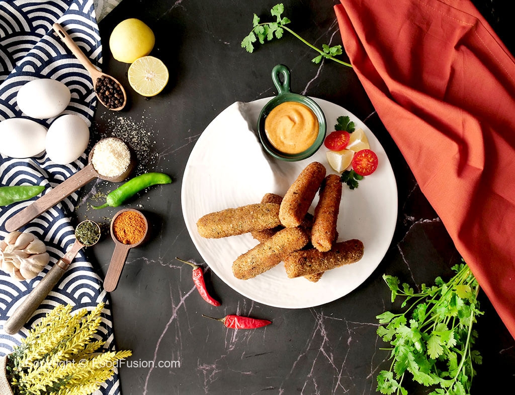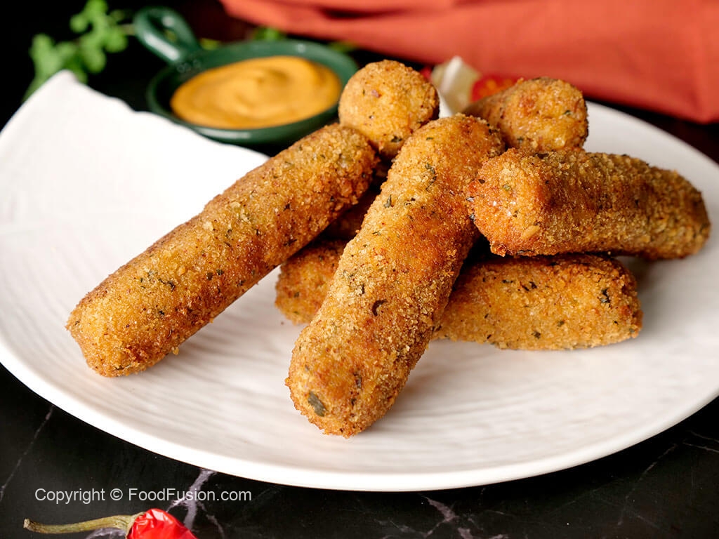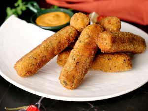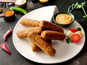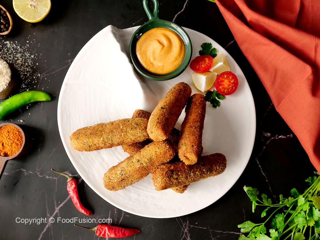 Now coat fingers into all-purpose flour then dip into whisked egg and coat with breadcrumbs and roll again on working surface to maintain its shape (makes 14-15) and freeze for 30 minutes.