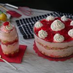 Garnish with reserved whipped cream & prepared strawberry jello.