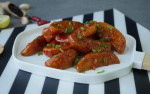 Add tomato ketchup,honey,vinegar,hot sauce,salt,mix well and cook for 1-2 minutes.