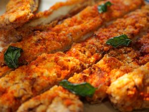 -Place the chicken fillet on a cutting board, slice from the side, open it, and flatten to make a butterfly shape.