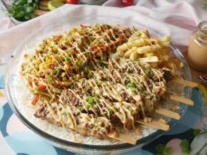 -Lal mirch powder,chaat masala,garam masala powder,pink salt,lal mirch crushed,zarda ka rang,lemon juice aur cooking oil dal ker ache tarhan crush ker lein.