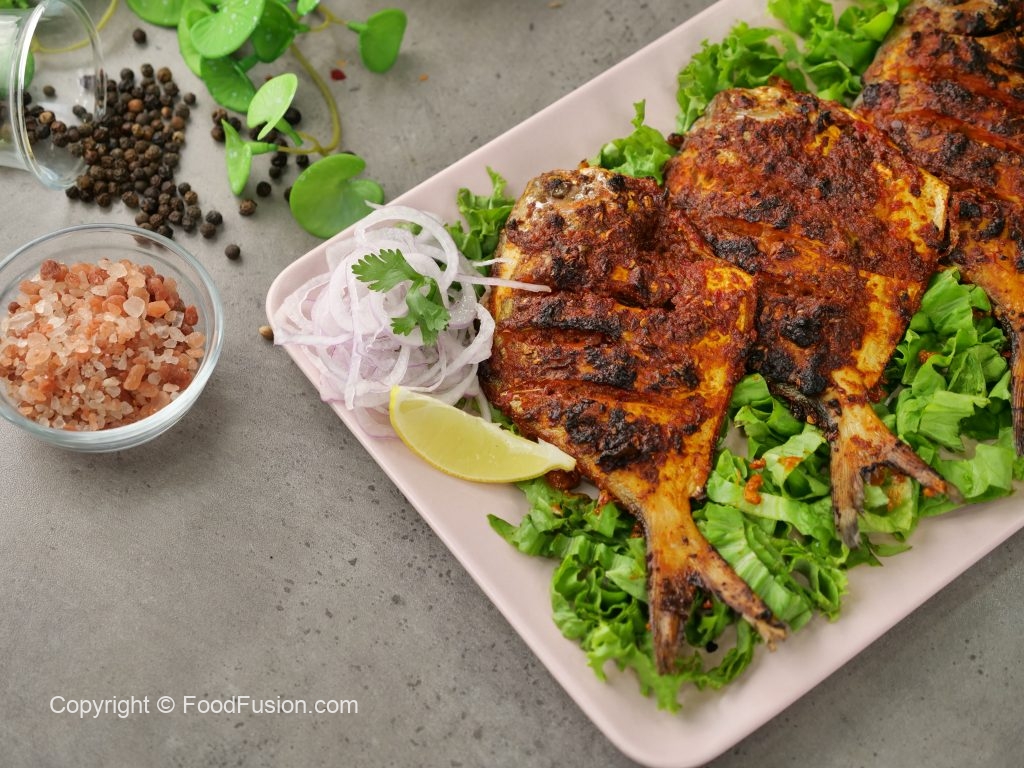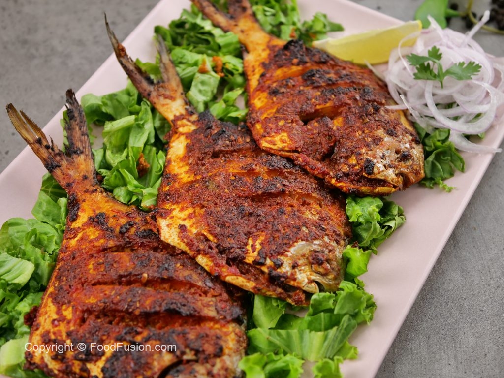 -Remove the fins of pomfret fish & make deep cuts on both sides.