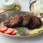 Haathon ko baraf ka thanday pani mein dip karein aur mixture ko la lein aur haath oil sa grease ker ka ek jaisay sizes ka kabab (150 gms) tayyar ker lein (makes 8)