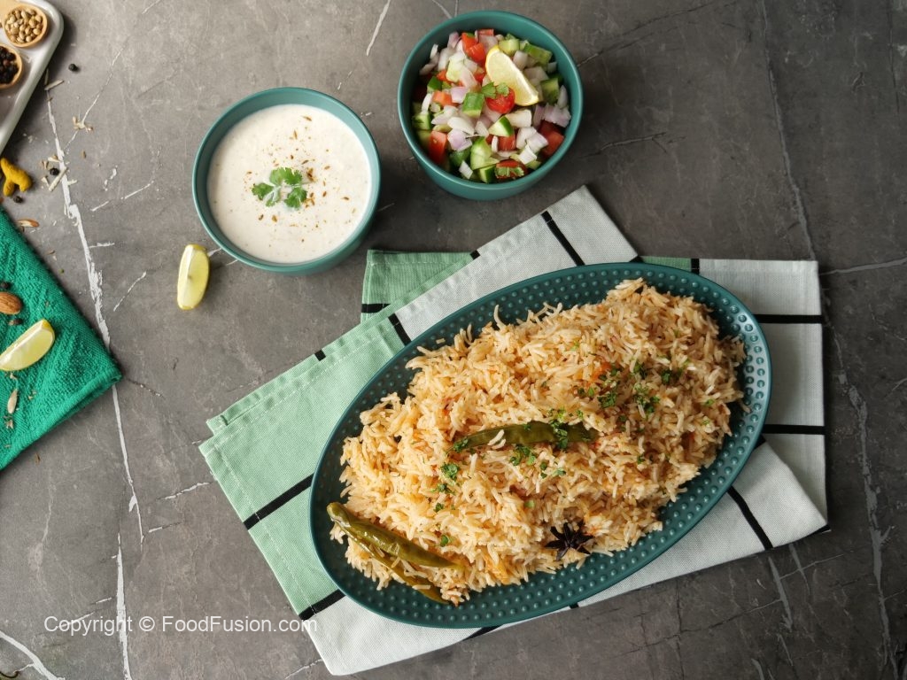 A quick and easy tomato rice recipe to bring a different feel to the rice you eat everyday. #HappyCookingToYou #FoodFusion #RamazanSpecial