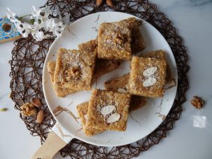 -Pour prepared batter in a 7”x7” baking dish (greased lined with baking paper) & tap few times.