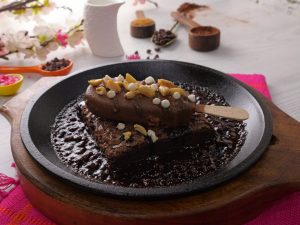 -In a hot sizzling pan,add chocolate brownie,pour chocolate sauce,add vanilla & hazelnut,drizzle chocolate sauce,sprinkle peanuts,white chocolate chips & serve!