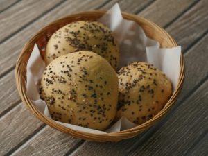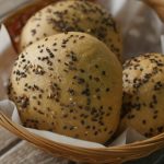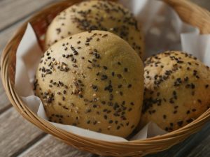 Apply milk and sprinkle sesame seeds.