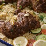 -Garnish with almonds,fresh coriander & serve chicken mandi with mandi rice & sauce!