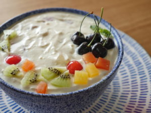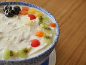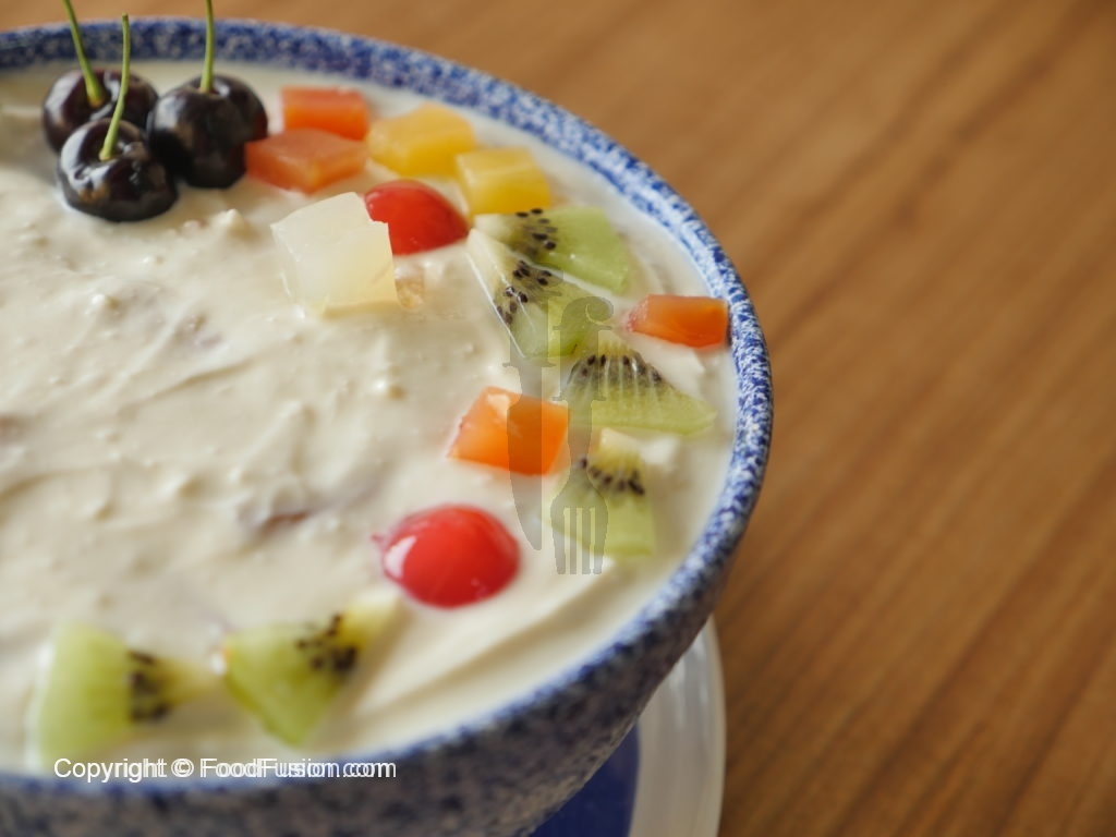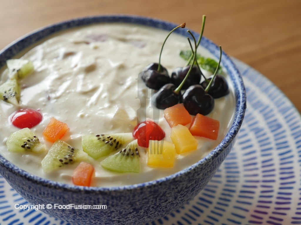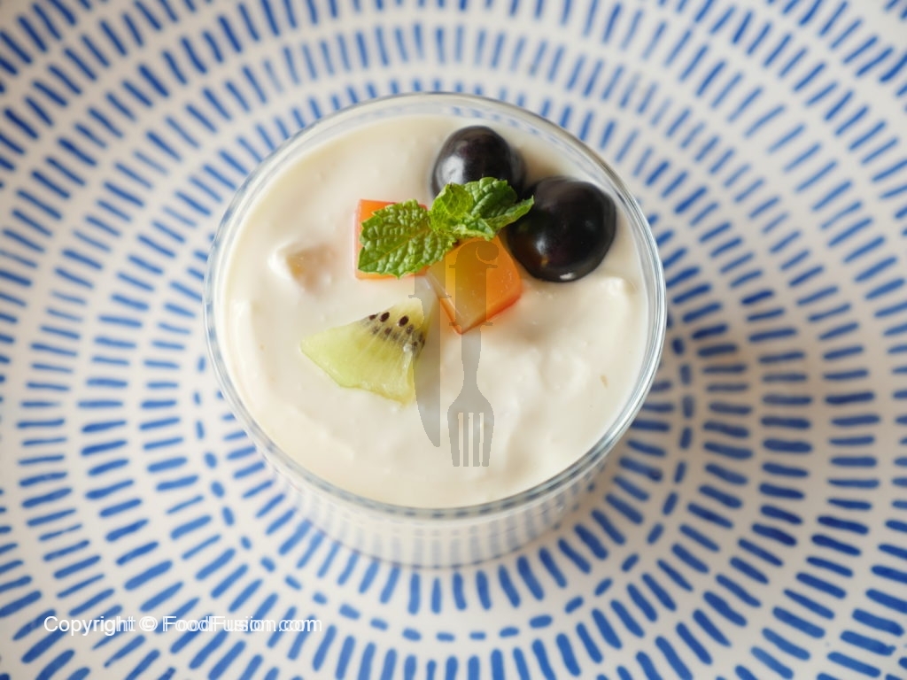 Fruit yogurt tayyar hai aur thanda serve karein.