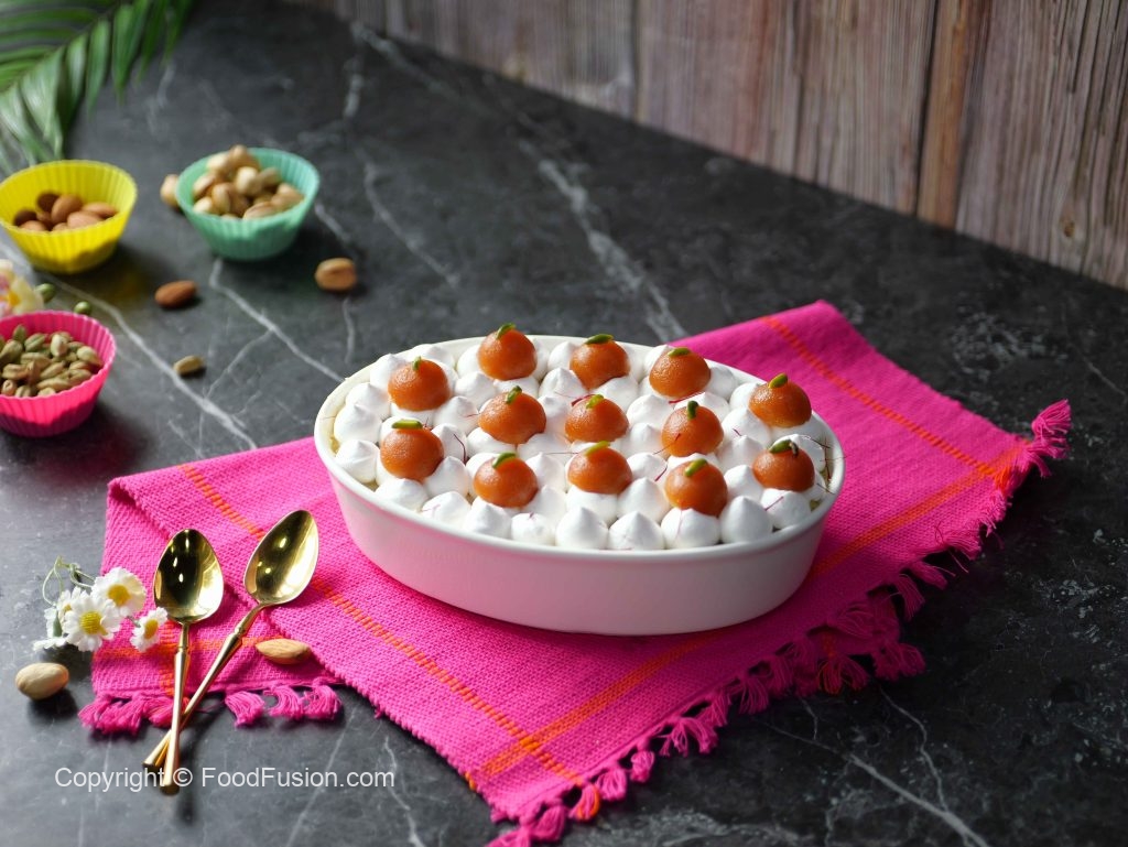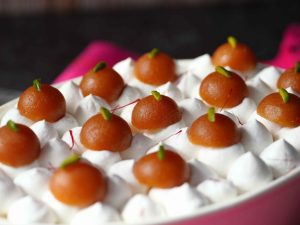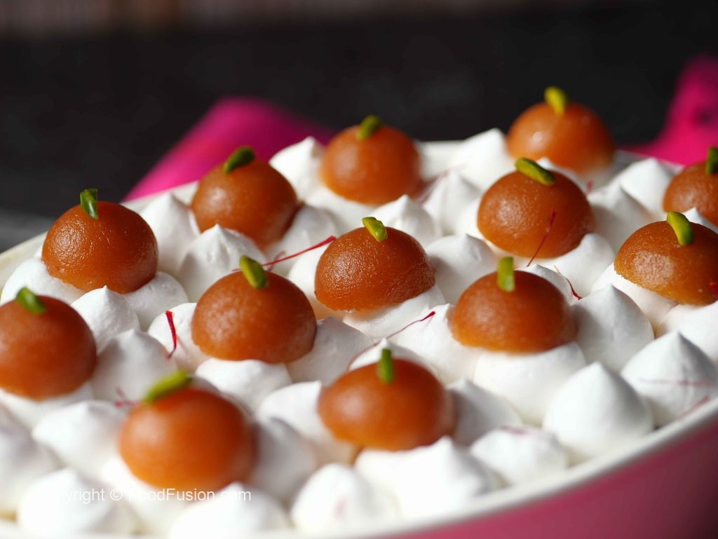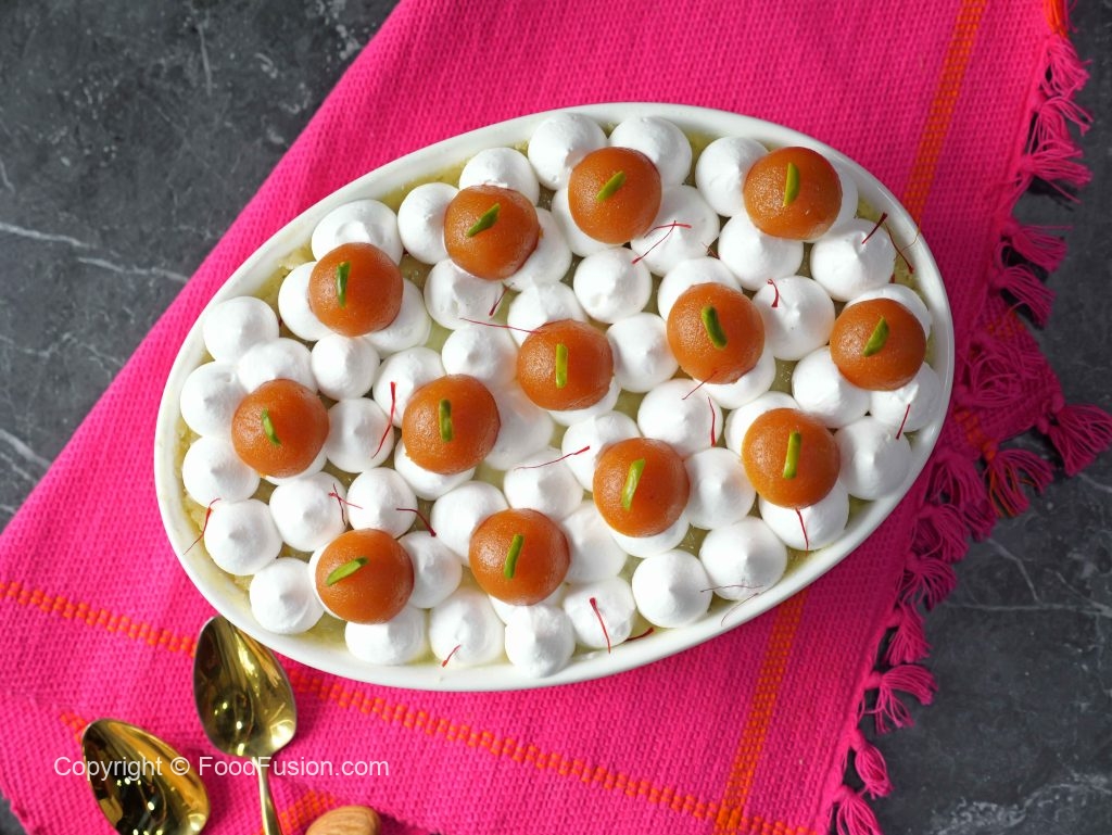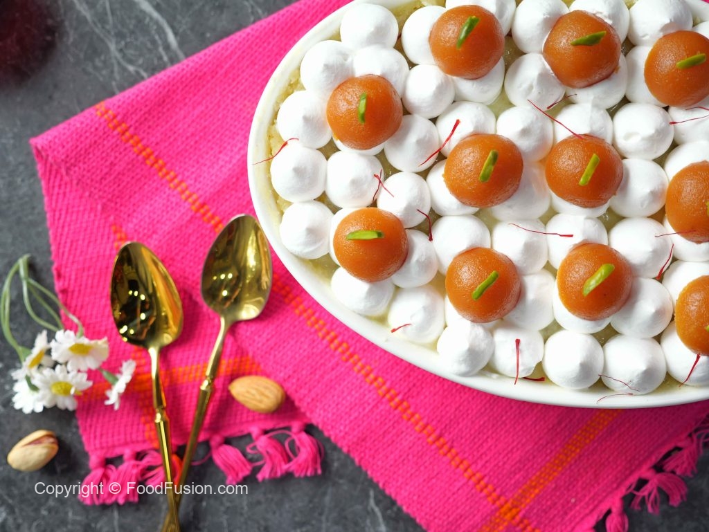 -Garnish with whipped cream,gulab jamun,pistachios,saffron & serve!